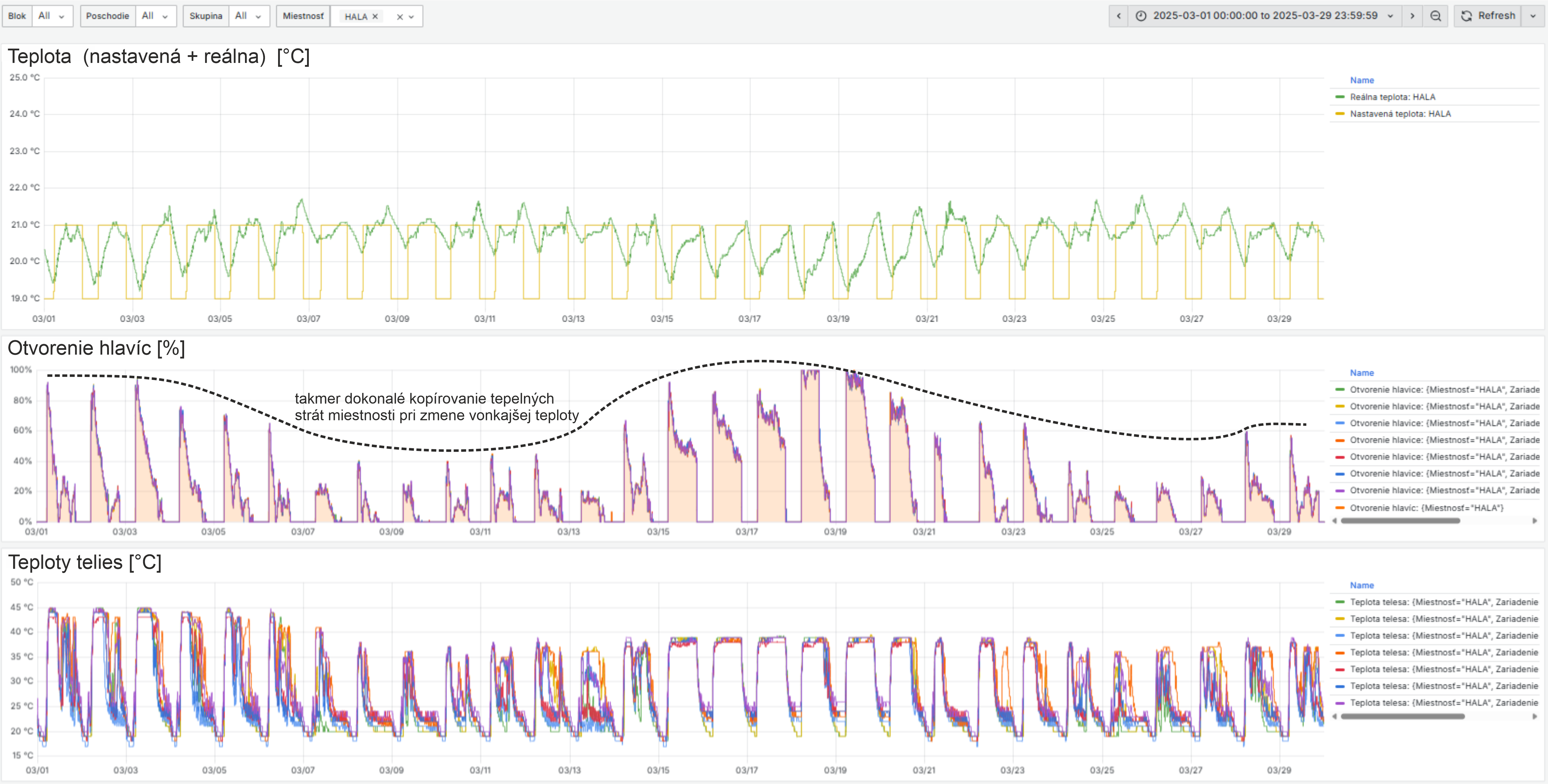 Graf1: Správna funkčnosť regulačného systému na prehľadnom mesačnom grafe