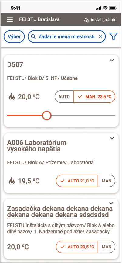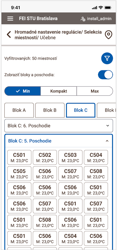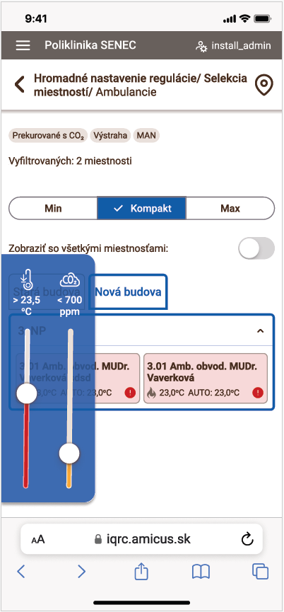 Nová webová aplikácia IQRC prináša rýchlejšie a prehľadnejšie ovládanie a podporuje prácu na PC, tablete aj smartfóne. Ponúka prehľadné informácie a možnosti konfigurácie, zobrazenia a filtrovania miestností. Filtrovanie a hromadné nastavenie zón je jednou zo silných stránok tejto aplikácie. Filtrovať je možné miestnosti nielen podľa priradenia do bloku či poschodia, ale ja na podľa názvu miestnosti, aktívneho programu či podľa zásahu užívateľa do regulácie. Veľmi prínosnou funkciou je dynamické parametrické filtrovanie na základe teploty a koncentrácie CO2, kde si takto vieme vyfiltrovať miestnosti s vysokou teplotou a nízkou koncentráciou CO2, čo sú potenciálne prázdne miestnosti vykurované na komfortnú teplotu. Následne pre skupinu filtrovaných miestností je možné aplikovať zmeny pre všetky zóny súčasne.